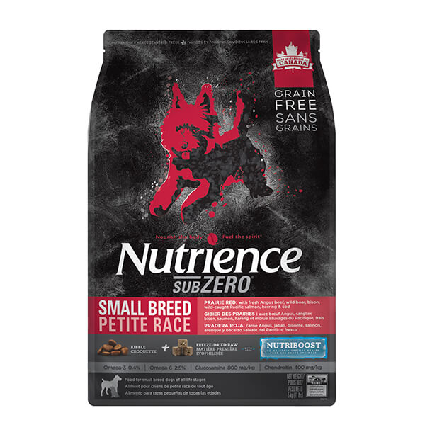 Les aliments SubZero Nutrience Sans grains Gibier des Prairies pour chiens de petite race respectent les exigences nutritionnelles stipulées dans le tableau Dog Food Nutrient Profiles de l’AAFCO pour toutes les étapes de vie, y compris la croissance des chiens de grande taille (32 kg ou plus à l’âge adulte).