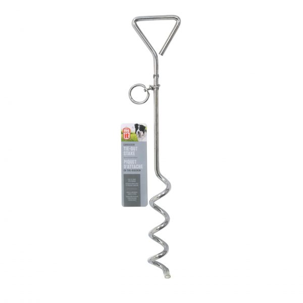 Le piquet d’attache tire-bouchon Dogit permet à votre chien d’errer librement en toute sécurité. Il est recommandé de l’utiliser avec le câble d’attache Dogit. Fixez une extrémité du câble d’attache au collier de votre animal de compagnie et l’autre au piquet d’attache.