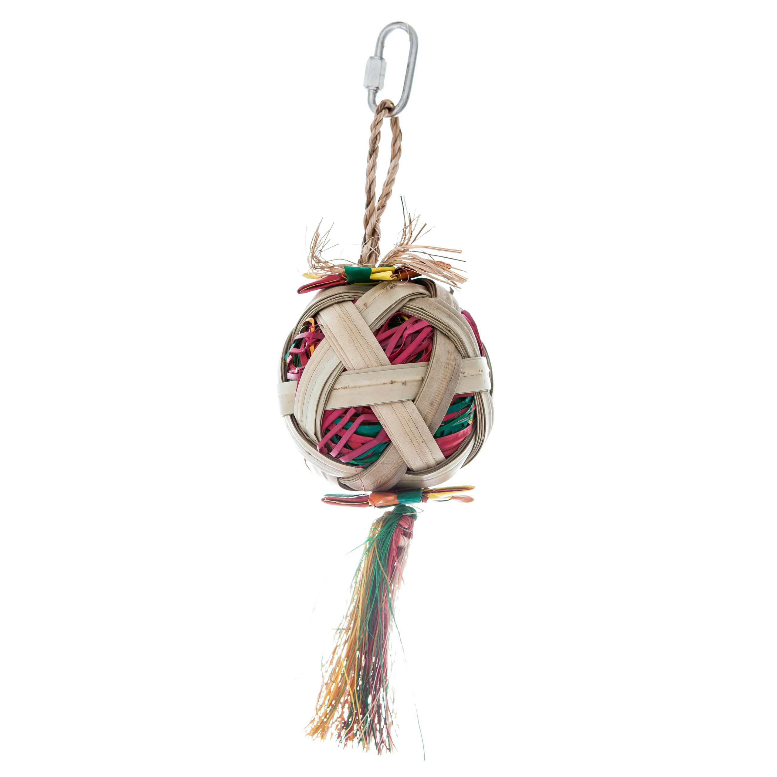 Réjouissez votre oiseau avec le Satellite à fourrager Rustic Treasures HARI. Fait main à partir de matériaux naturels, soit abaca et feuilles de palmier, ce jouet stimulant soulage votre perroquet de l’ennui et le divertit pendant des heures. Remplissez le jouet de régals ou d’aliments délicieux et observez votre oiseau l’explorer!